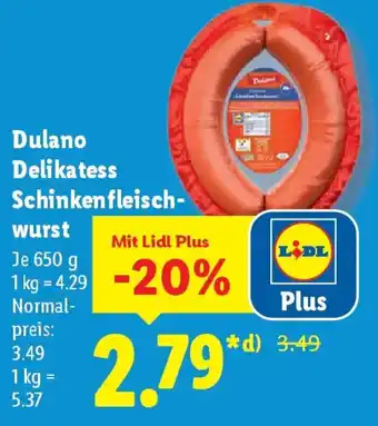 Jetzt im Angebot bei Lidl: Dulano Delikatess Schinkenfleischwurst ✅ Aktion gültig vom 11-01 bis 17-01.