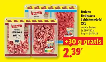 Jetzt im Angebot bei Lidl: Dulano Delikatess Schinkenwürfel XXL ✅ Aktion gültig vom 5-01 bis 10-01.