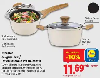 Ernesto Aluguss-Topf/ -Stielkasserolle mit Holzoptik Angebote und Aktionen bei Lidl
