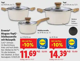 Jetzt im Angebot bei Lidl: Ernesto Aluguss-Topf/ Stielkasserolle mit Holzoptik ✅ Aktion gültig vom 4-01 bis 10-01.