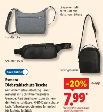 Jetzt im Angebot bei Lidl: Esmara diebstahlschutz-tasche handtasche ✅ Aktion gültig vom 16-03 bis 21-03.