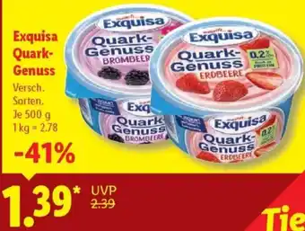 Werfen Sie einen Blick auf die günstigsten Produkte zwischen all den Angeboten! Wenn Sie gerne wissen möchten, ob Lidl die höchsten Rabatte für Exquisa Quark Genuss anbietet, vergleichen Sie die Angebote ganz einfach auf der Startseite mit den anderen Geschäften.