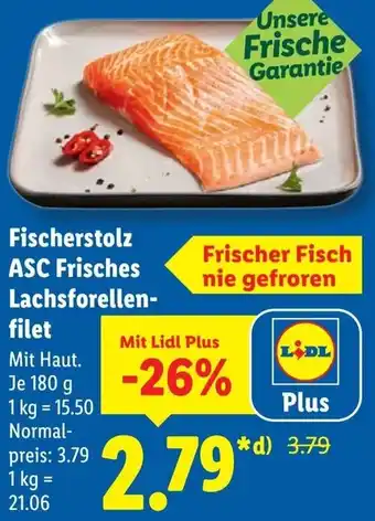 Jetzt im Angebot bei Lidl: Fischerstolz ASC Frisches Lachsforellenfilet ✅ Aktion gültig vom 2-03 bis 8-03.