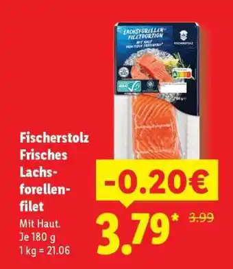 Jetzt im Angebot bei Lidl: Fischerstolz Frisches Lachsforellenfilet ✅ Aktion gültig vom 21-02 bis 1-03.