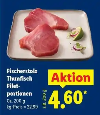 Jetzt im Angebot bei Lidl: Fischerstolz Thunfisch Filetportionen ✅ Aktion gültig vom 23-02 bis 28-02.