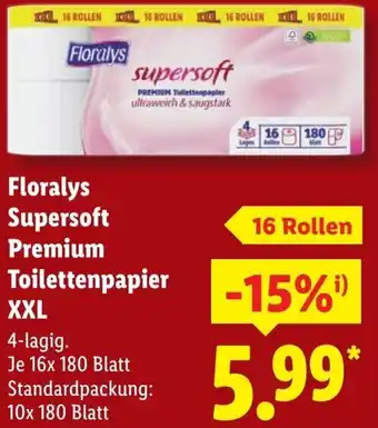 Jetzt im Angebot bei Lidl: Floralys Supersoft Premium Toilettenpapier XXL ✅ Aktion gültig vom 2-03 bis 8-03.