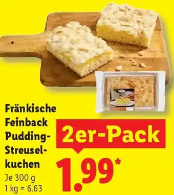 Jetzt im Angebot bei Lidl: Fränkische Feinback Pudding Streuselkuchen ✅ Aktion gültig vom 16-02 bis 22-02.
