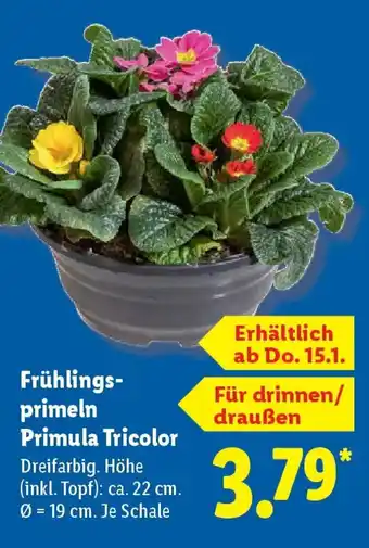 Jetzt im Angebot bei Lidl: Frühlings Primula Tricolor ✅ Aktion gültig vom 11-01 bis 17-01.