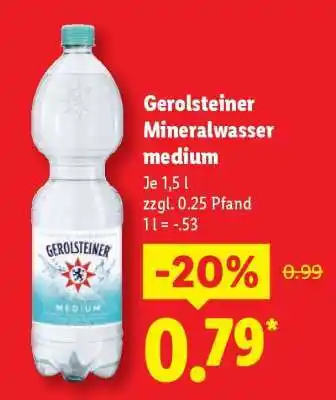 Jetzt im Angebot bei Lidl: Gerolsteiner Mineralwasser medium ✅ Aktion gültig vom 5-01 bis 10-01.