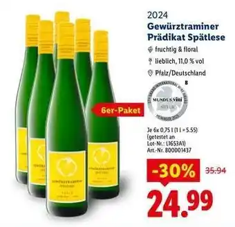 Gewürztraminer Prädikat Spätlese Angebote und Online Aktionen direkt aus dem aktuellen Lidl Angebot
