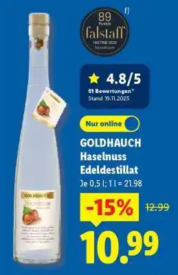 Jetzt im Angebot bei Lidl: Goldhauch Haselnuss Edeldestillat ✅ Aktion gültig vom 26-01 bis 31-01.