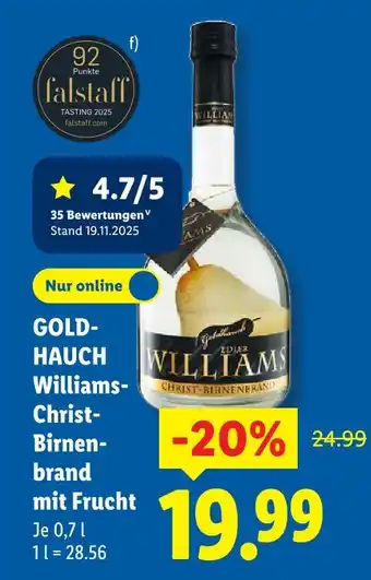 Jetzt im Angebot bei Lidl: Goldhauch williams-christ-birnenbrand mit frucht ✅ Aktion gültig vom 26-01 bis 31-01.
