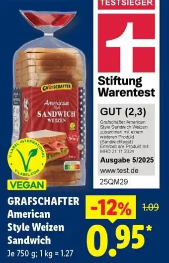 Jetzt im Angebot bei Lidl: Grafschafter American Style Weizen Sandwich ✅ Aktion gültig vom 27-04 bis 2-05.