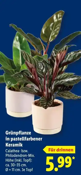 Jetzt im Angebot bei Lidl: Grünpflanze in pastellfarbener Keramik ✅ Aktion gültig vom 16-02 bis 22-02.