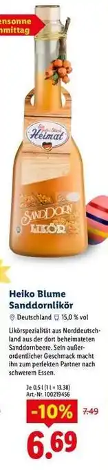 Jetzt im Angebot bei Lidl: Heiko Blume Sanddornlikör ✅ Aktion gültig vom 1-03 bis 31-03.