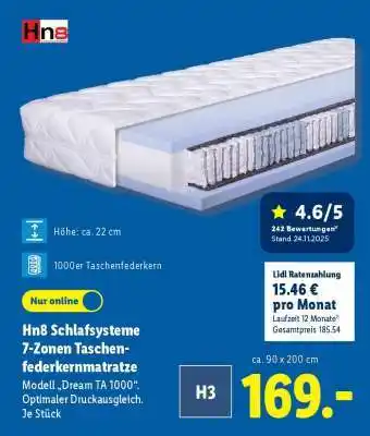 Jetzt im Angebot bei Lidl: Hn8 Schlafsysteme 7-Zonen-Taschenfederkernmatratze ✅ Aktion gültig vom 19-01 bis 24-01.
