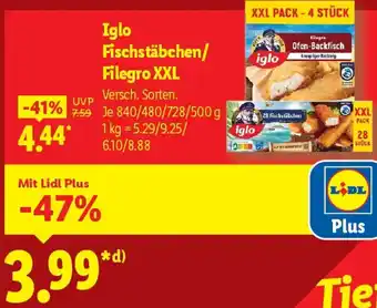 Iglo Fischstäbchen/ Filegro XXL Angebote und Aktionen bei Lidl