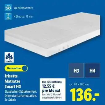 Irisette Matratze Smart HS Angebote und Online Aktionen direkt aus dem aktuellen Lidl Angebot