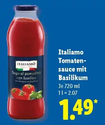Jetzt im Angebot bei Lidl: Italiamo Tomatensauce mit Basilikum ✅ Aktion gültig vom 19-01 bis 25-01.