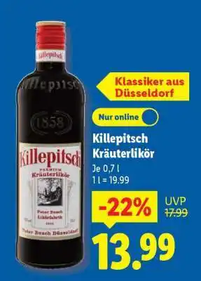 Jetzt im Angebot bei Lidl: Killepitsch Kräuterlikör ✅ Aktion gültig vom 9-02 bis 14-02.