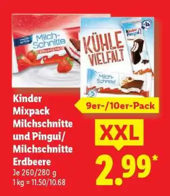 Kinder Mixpack Milchschnitte und Pingui/Milchschnitte Erdbeere Angebote und Online Aktionen direkt aus dem aktuellen Lidl Angebot