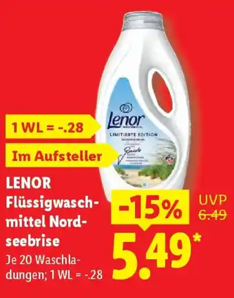 Jetzt im Angebot bei Lidl: LENOR Flüssigwasch mittel Nordseebrise ✅ Aktion gültig vom 27-04 bis 2-05.