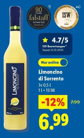 Jetzt im Angebot bei Lidl: Limoncino di Sorrento ✅ Aktion gültig vom 19-01 bis 25-01.