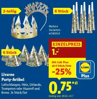 Jetzt im Angebot bei Lidl: Livarno Party-Artikel ✅ Aktion gültig vom 29-12 bis 31-12.