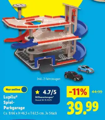 Lupilu Spiel- Parkgarage ist jetzt im Angebot bei Lidl, gültig vom 19-01-2026 bis 25-01-2026. Besuchen Sie die Website von Lidl oder kaufen Sie Lupilu Spiel- Parkgarage direkt im Geschäft. Auf Prospektangebote.de finden Sie immer die besten aktuellen Aktionen. Vergleichen Sie Lupilu Spiel- Parkgarage mit anderen Angeboten und prüfen Sie, ob sich ein Kauf jetzt lohnt. Behalten Sie kommende Aktionen im Blick, denn manche Produkte sind nur nächste Woche oder nur vor Ort verfügbar.Häufig gestellte Fragen über Lupilu Spiel- Parkgarage