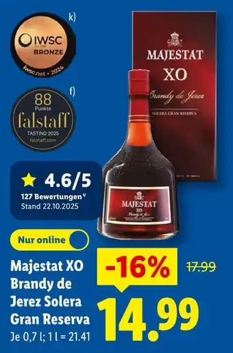 Majestat xo brandy de jerez solera gran reserva Angebote und Aktionen bei Lidl