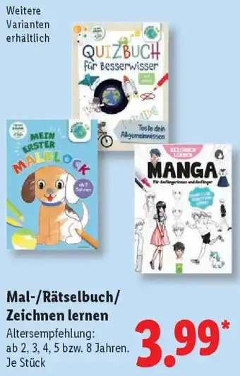 Jetzt im Angebot bei Lidl: Mal-/Rätselbuch/ Zeichnen lernen ✅ Aktion gültig vom 2-02 bis 7-02.