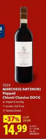 Jetzt im Angebot bei Lidl: MARCHESI ANTINORI Pèppoli Chianti Classico DOCG ✅ Aktion gültig vom 1-04 bis 30-04.