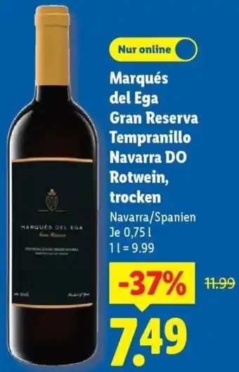 Marqués del Ega Gran Reserva Tempranillo Navarra DO Rotwein, trocken Angebote und Aktionen bei Lidl