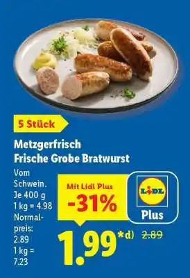 Jetzt im Angebot bei Lidl: Metzgerfrisch Frische grobe Bratwurst ✅ Aktion gültig vom 12-01 bis 17-01.