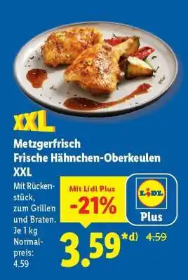 Jetzt im Angebot bei Lidl: Metzgerfrisch Frische Hähnchen-Oberkeulen XXL ✅ Aktion gültig vom 26-01 bis 31-01.