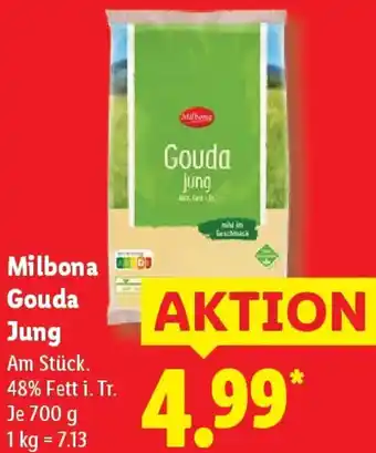 Jetzt im Angebot bei Lidl: Milbona Gouda Jung ✅ Aktion gültig vom 9-02 bis 15-02.