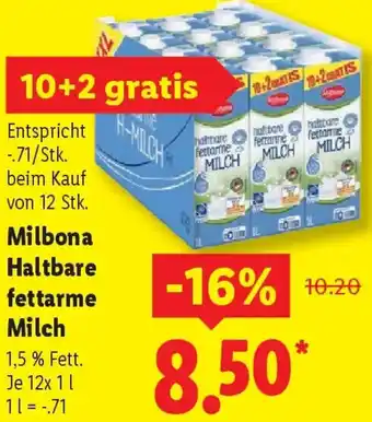 Milbona Haltbare fettarme Milch Angebote und Aktionen bei Lidl