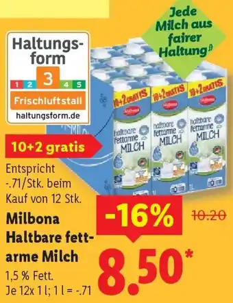 Milbona Haltbare fettarme Milch-Angebot bei Lidl