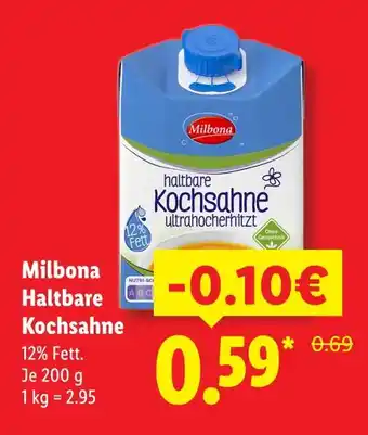 Jetzt im Angebot bei Lidl: Milbona haltbare kochsahne ✅ Aktion gültig vom 1-03 bis 31-12.
