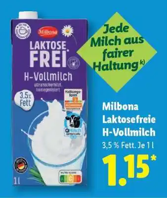 Jetzt im Angebot bei Lidl: Milbona Laktosefreie H-Vollmilch ✅ Aktion gültig vom 5-01 bis 10-01.