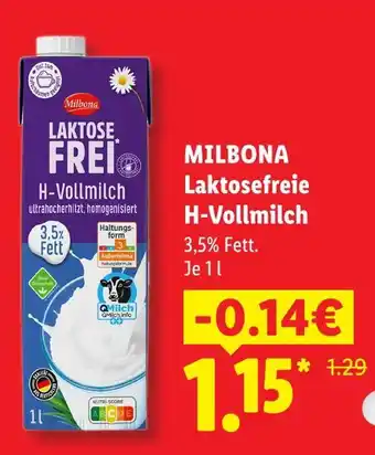 Jetzt im Angebot bei Lidl: Milbona laktosefreie h-vollmilch ✅ Aktion gültig vom 29-03 bis 31-12.