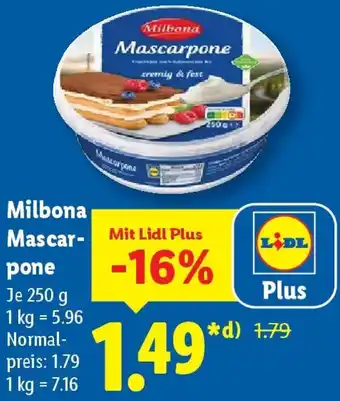 Jetzt im Angebot bei Lidl: Milbona Mascarpone ✅ Aktion gültig vom 15-12 bis 21-12.