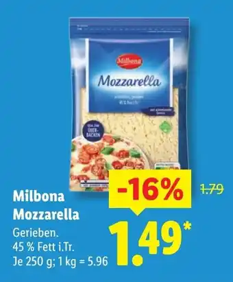 Jetzt im Angebot bei Lidl: Milbona Mozzarella ✅ Aktion gültig vom 16-02 bis 22-02.