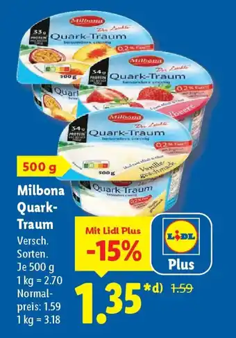 Den Preis von dem Milbona Quark-Traum finden Sie auch oben auf der Website, zusammen mit dem Datum, ab wann das Angebot erhältlich ist. Sie können die Preise auch im aktuellen Lidl Prospekt nachhalten oder auf der Lidl Website nachschauen. Durch die Angebote können Sie sicher sein, die Lidl Produkte zum absoluten Bestpreis zu ergattern.
