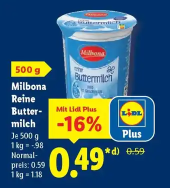 Jetzt im Angebot bei Lidl: Milbona Reine Buttermilch ✅ Aktion gültig vom 19-01 bis 25-01.