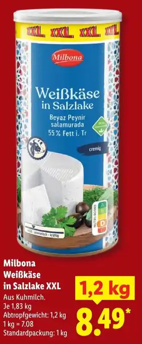 Jetzt im Angebot bei Lidl: Milbona Weißkäse in Salzlake XXL ✅ Aktion gültig vom 2-03 bis 8-03.