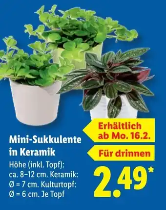 Jetzt im Angebot bei Lidl: Mini-Sukkulente in Keramik ✅ Aktion gültig vom 16-02 bis 22-02.