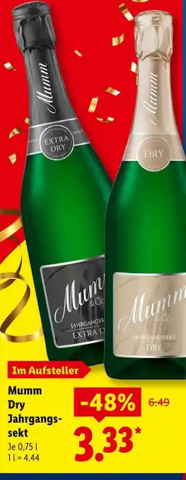 Jetzt im Angebot bei Lidl: Mumm jahrgangssekt extra dry ✅ Aktion gültig vom 29-12 bis 3-01.