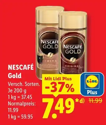 Jetzt im Angebot bei Lidl: Nescafé gold crema ✅ Aktion gültig vom 27-04 bis 2-05.