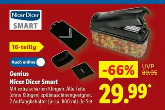 Abgesehen von Nicer Dicer Smart, bietet Lidl eine Menge anderer Artikel an. Behalten Sie den wöchentlichen Lidl Prospekt im Blick, um die besten Angebote und Aktionen nicht zu verpassen. Abgesehen von Nicer Dicer Smart können Sie weitere, interessante Angebote entdecken: Genius Nicer Dicer Fusion Smart 16-tlg, Genius Nicer Dicer Quick & Genius Nicer Dicer, 13-teilig.